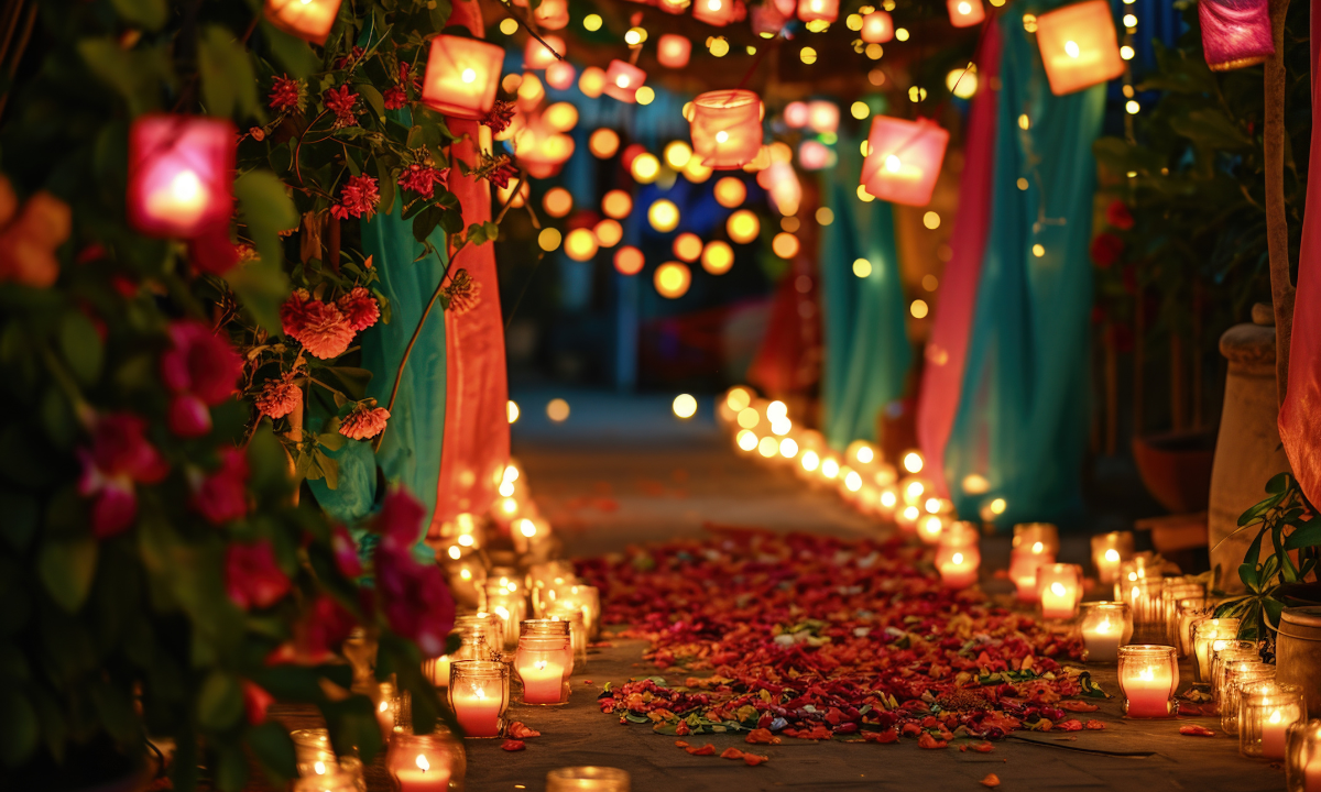 Think flowing fabrics, seashells, and driftwood centerpieces. Add fairy lights for a magical evening vibe.